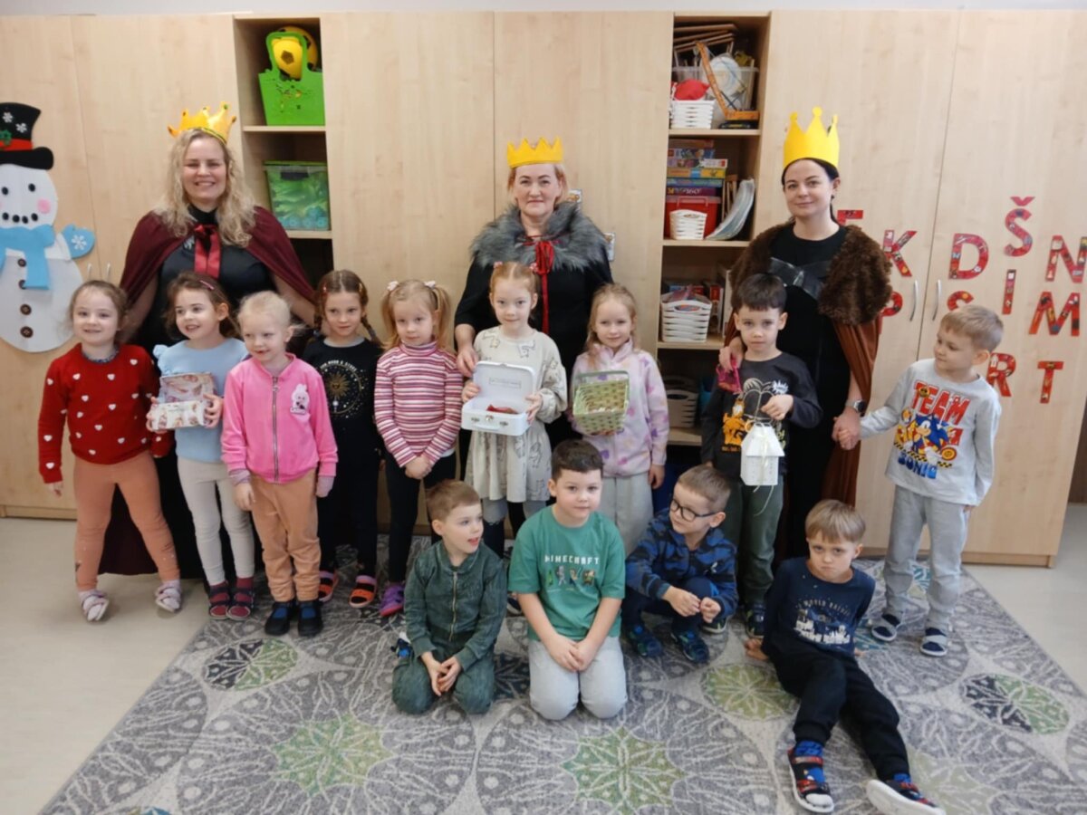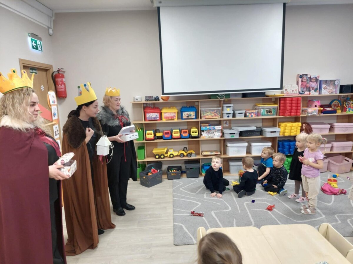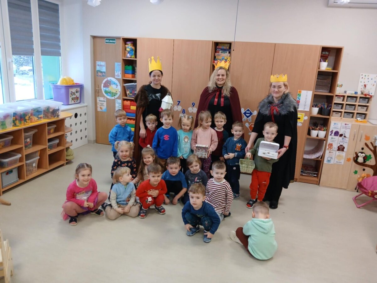 Šiandien Trys Karaliai lankėsi darželio grupėse. Vaikai smalsiai pasitiko svečius, bandė įvardinti jų vardus, apžiūrinėjo atneštas dovanas. Karalių apsilankymas simboliškai pažymėjo šventinio laikotarpio pabaigą, atsisveikinant su Kalėdų stebuklu iki kitų metų.